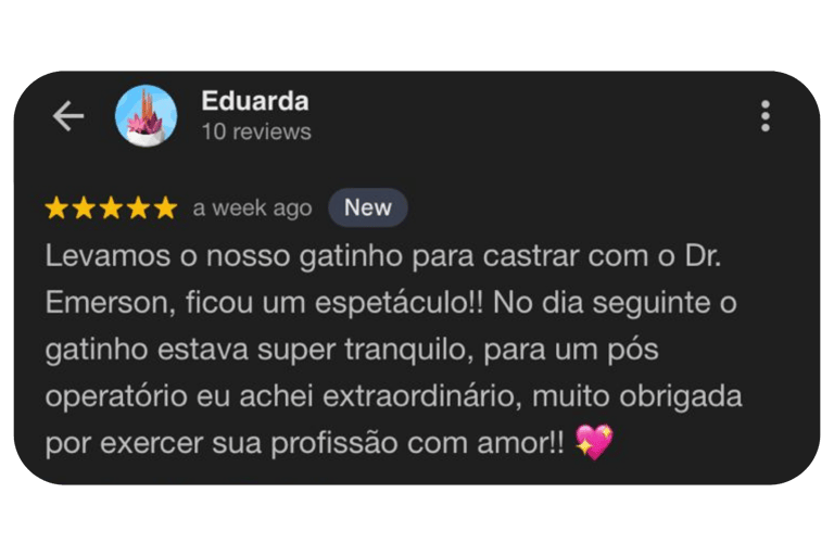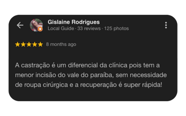 Pós-operatório mais tranquilo para o pet e o tutor.