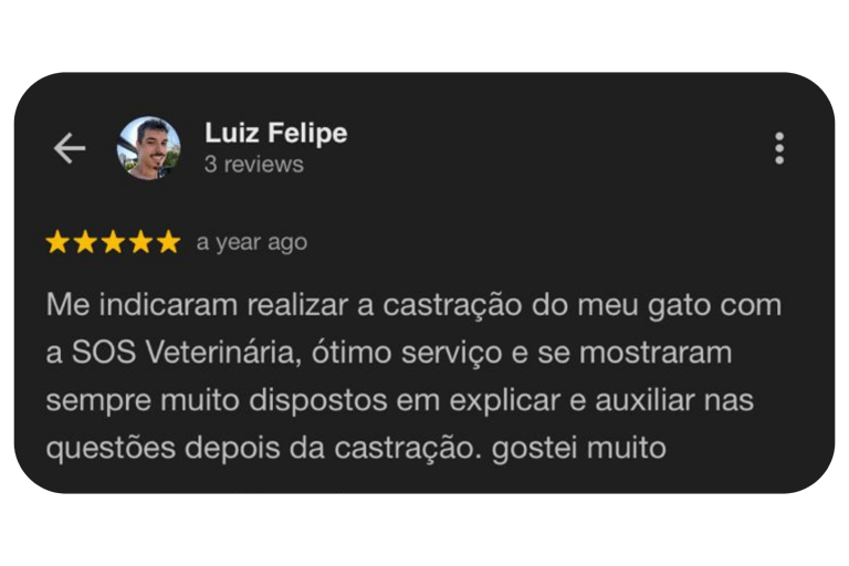 A castração de mini corte da SOS Veterinário é rápida, segura e menos invasiva, garantindo menor dor, recuperação mais rápida e mais conforto para o seu pet.
